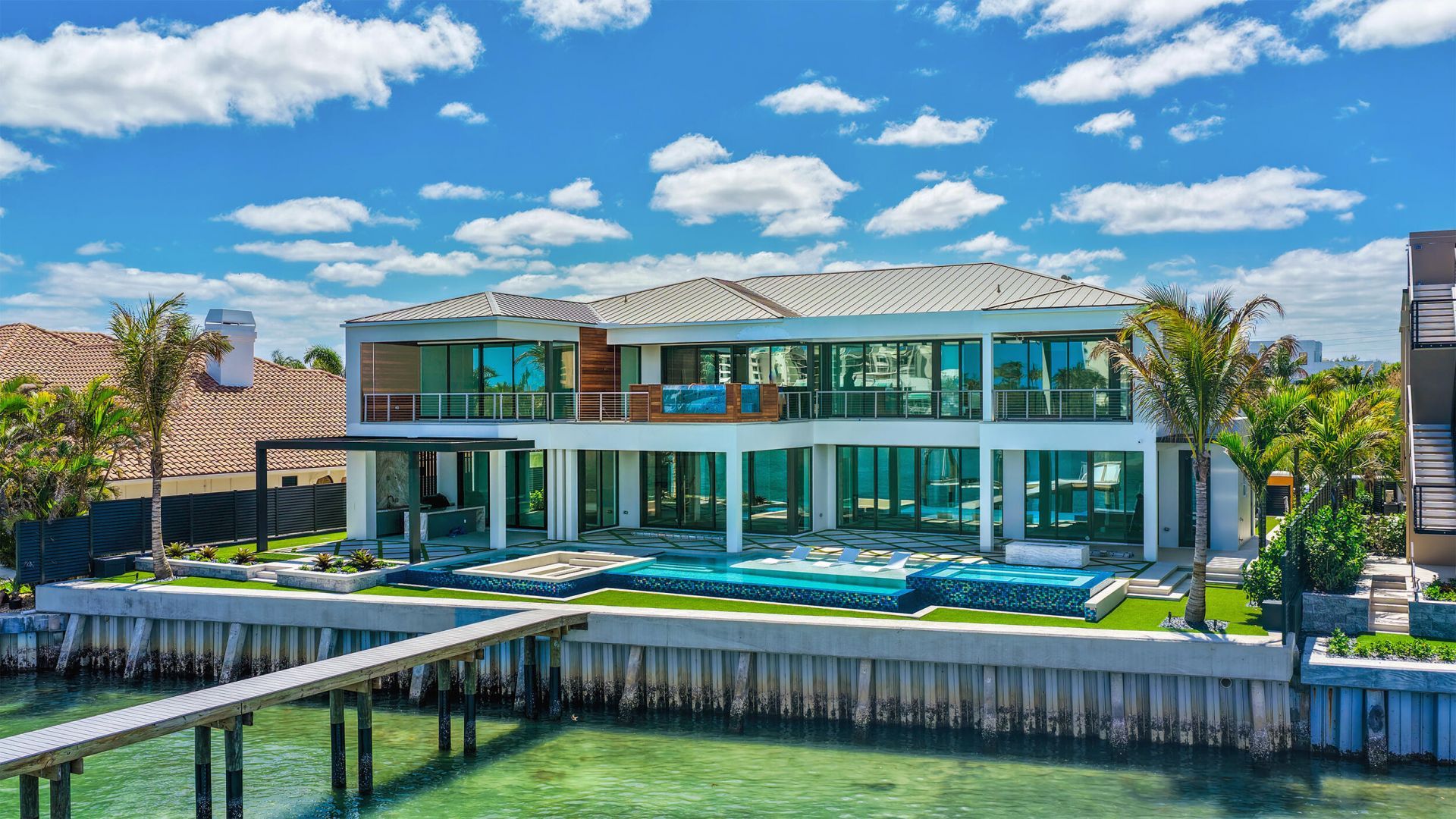 Built by award-winning High Tide Waterfront Properties on Jupiter's iconic Bahamian-blue Intracoastal, this brand-new residence delivers a true sense of arrival with standout design and thoughtful execution throughout. From the moment you enter, your eye is drawn through the home to the beautiful blue water views beyond, setting the tone for the living experience inside. Expansive living spaces are finished with high-end materials and meticulous attention to detail. High Tide is known for thoughtfully building homes that make the experience of living in them unmatched, and this property is no exception. Designed for entertaining, the backyard features multiple fire pits, a fully equipped outdoor kitchen, a waterfall feature, and inviting spaces to gather and relax along the water, creating an atmosphere that draws friends and family in. The chef's kitchen is outfitted with top-of-the-line appliances and designed to seamlessly connect to the home's main living and entertaining areas, including a club room ideal for hosting. Both first and second floor primary suites offer flexibility and privacy, while the second-floor balcony showcases a hot tub with sweeping Intracoastal views. Complete with a 32,000-pound boat lift and direct ocean access with no fixed bridges, this property delivers the ultimate Jupiter waterfront lifestyle. There is simply too much to capture in words-this is a home that must be experienced in person to fully appreciate.