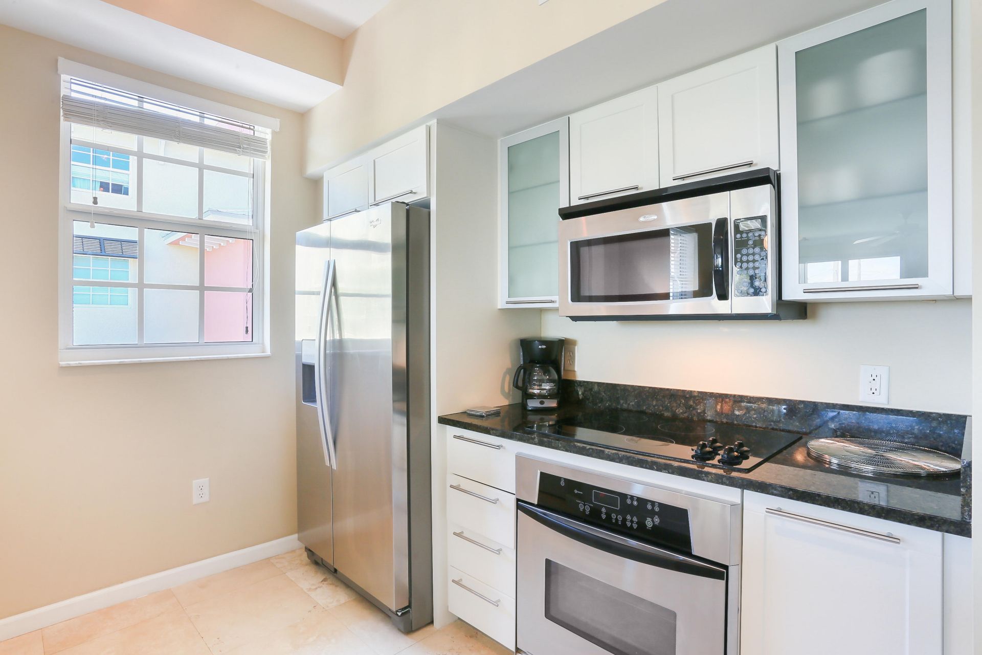 Downtown location! In the middle of Pineapple Grove this 1 bedroom furnished condo is quiet and private , but yet steps to The Ave and close to the beach. Rent includes cable, internet / wife and water. 1 private garage parking space and roof top pool